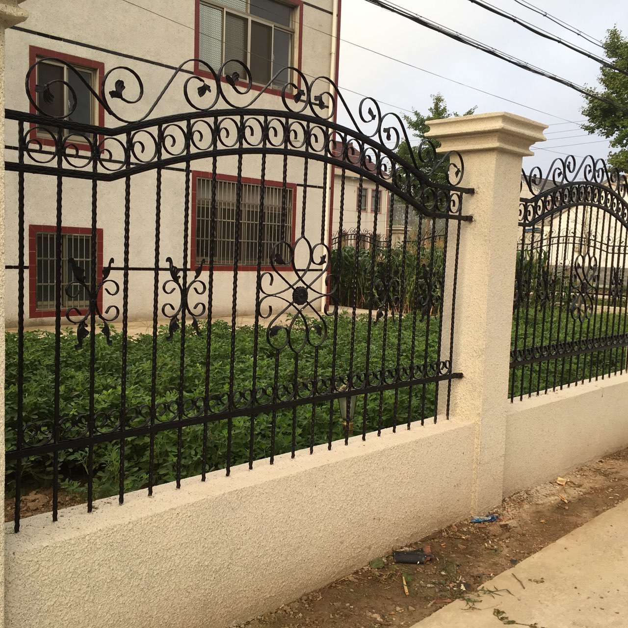 圍欄的設(shè)計非常精致,充滿了復雜的卷曲和花紋圖案,給人一種典雅而復古的感覺。圍欄的柱子是方形的,頂部有簡單的裝飾。