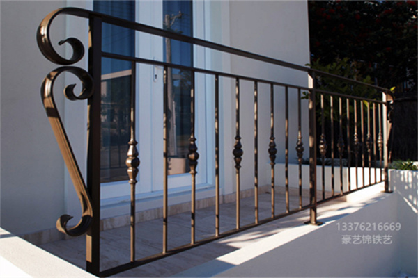 這款護欄的設(shè)計簡潔而優(yōu)雅,主要由垂直的欄桿和頂部的裝飾性卷曲花紋組成。欄桿的顏色為深棕色,給人一種沉穩(wěn)和古典的感覺。其精美且實用的鐵藝欄桿,適合用于戶外陽臺或露臺的防護。