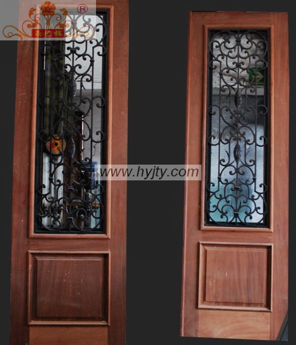 該款編號為的鐵藝門是無錫鐵藝護欄廠為別墅庭院設計的一款高檔豪華的鐵藝門。該款鐵藝門材料搭配美觀合理,選材穩定,容易鍍鋅。由常年從事鐵藝制造工作的專業技師經手工鍛打、加熱、彎曲造型、拋光、節點特殊處理、硝基油漆等工藝制造而成。該鐵藝門美觀大方而又不失厚重感,門體上面的兩個圓及其內部和上部裝飾物提升了大門的整體效果。稱得上是獨出心裁,安裝合理??勺鳛閯e墅庭院大門的首選。